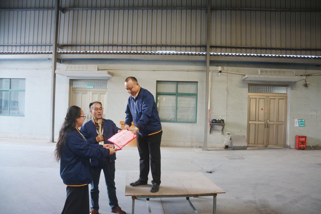 2022年10月24日,趁著周一早會時間,我們對模具部及五金模組頒發了獎狀及獎金,激勵各位佳人以模具部為榜樣,在自己精通熟悉的領域里,主動挑起重擔,精進技藝,簡化流程,節約公司成本,開創屬于我們自己自創自主的品牌產品。只要有利公司發展前景,公司一定給予相應嘉獎。