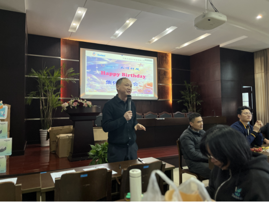 慶典伊始,公司常務副總黃總攜手各位領導親臨現場,為各位壽星送上最真摯的生日祝福。黃總在致辭中表示,員工是公司發展的核心力量,每一位壽星的成長,都與公司的發展同頻共振,感謝大家一路以來的堅守與付出,愿各位壽星在新的一歲里,平安喜樂、不負韶華,在崗位上綻放更多光彩,與公司共赴新征程、共筑新輝煌。一句句溫暖的寄語,一聲聲誠摯的祝福,讓現場的每一位壽星都倍感親切與鼓舞。